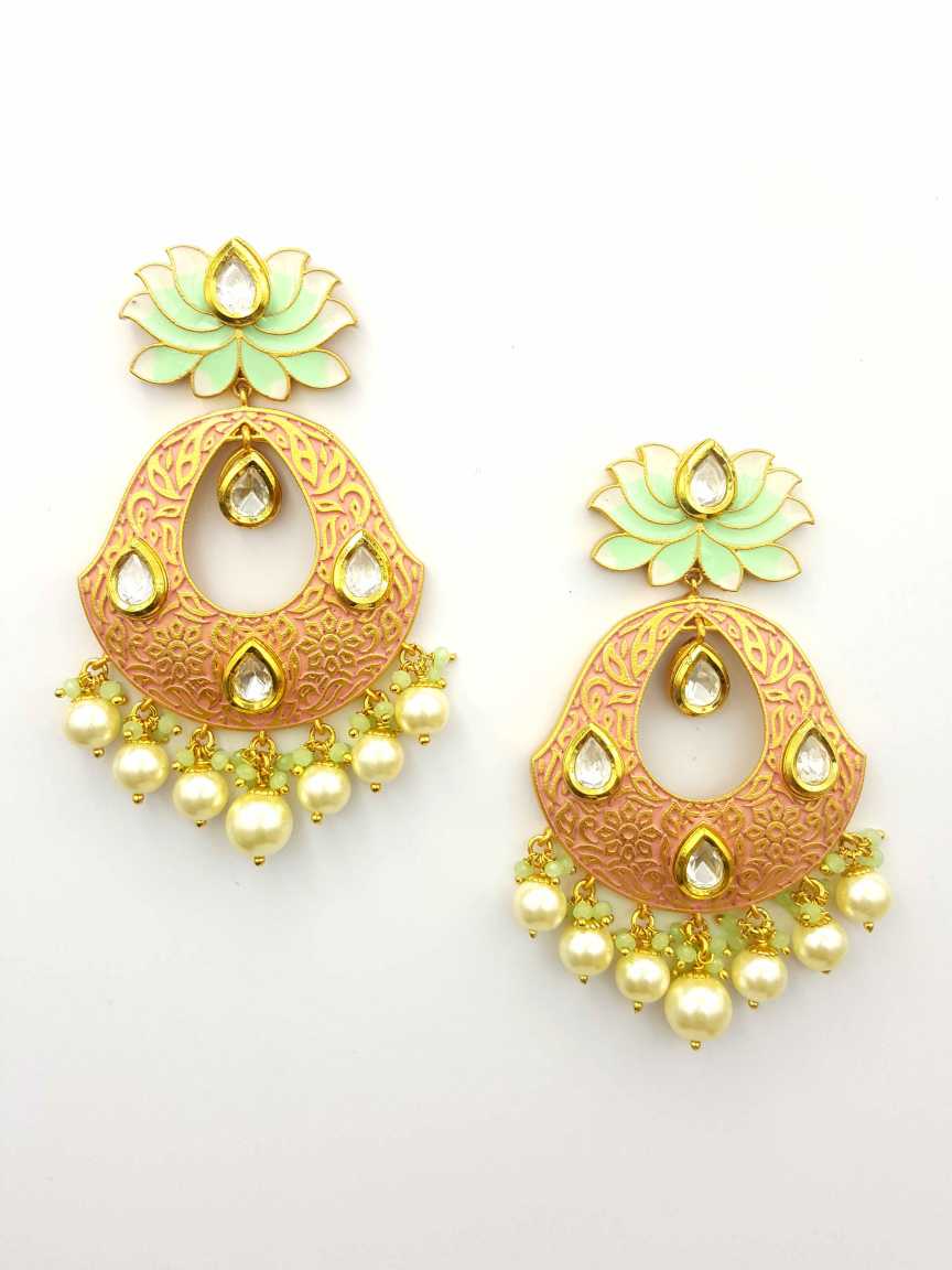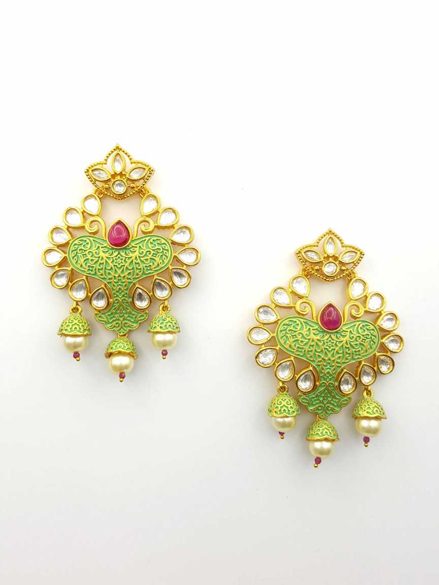 VILANDI KUNDAN EARRINGS MADE IN BRASS & COPPER ALLOY. STYLE NUMBER OF THIS DESIGN IS 19427